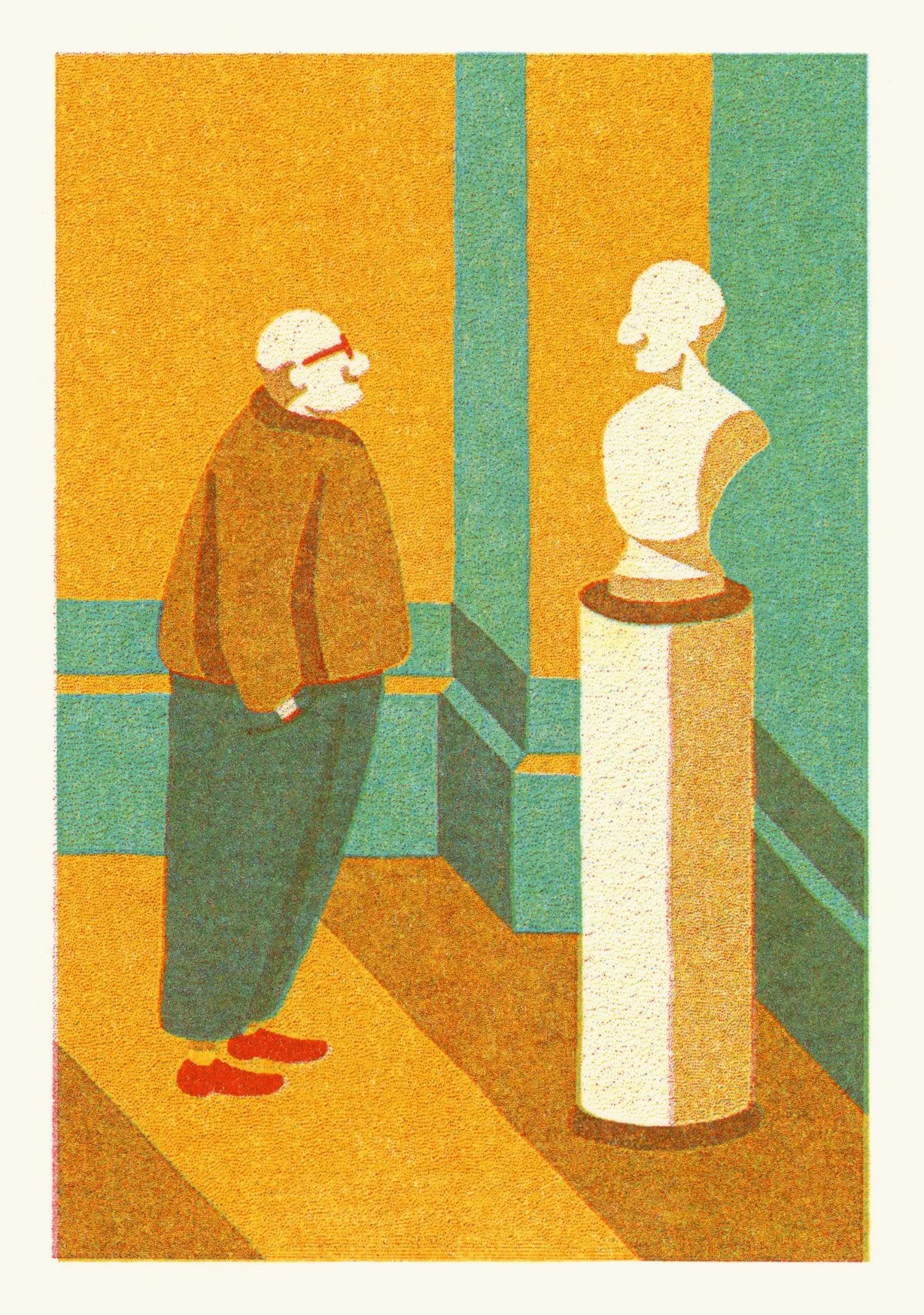 Aqua, red and sunflower risograph