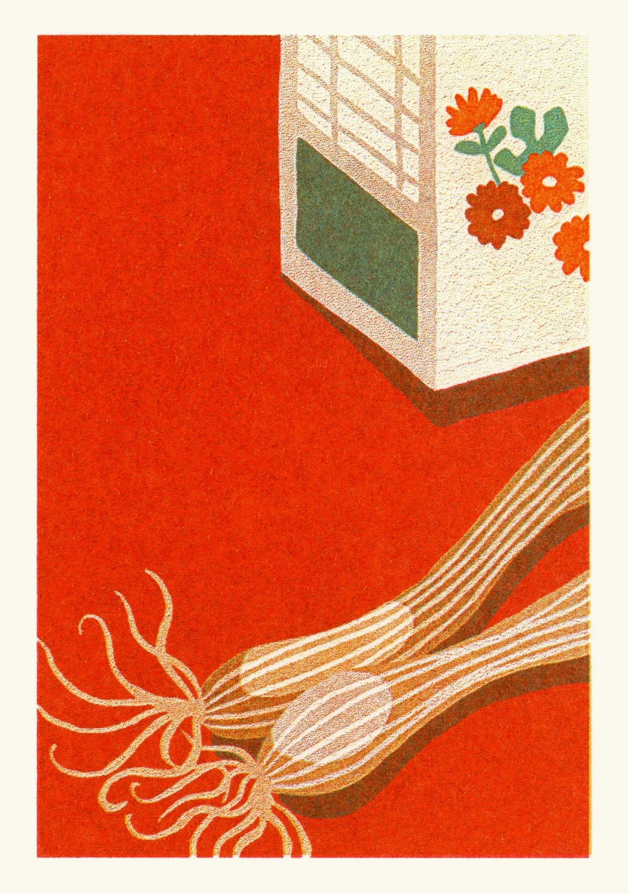 Aqua, red and sunflower risograph
