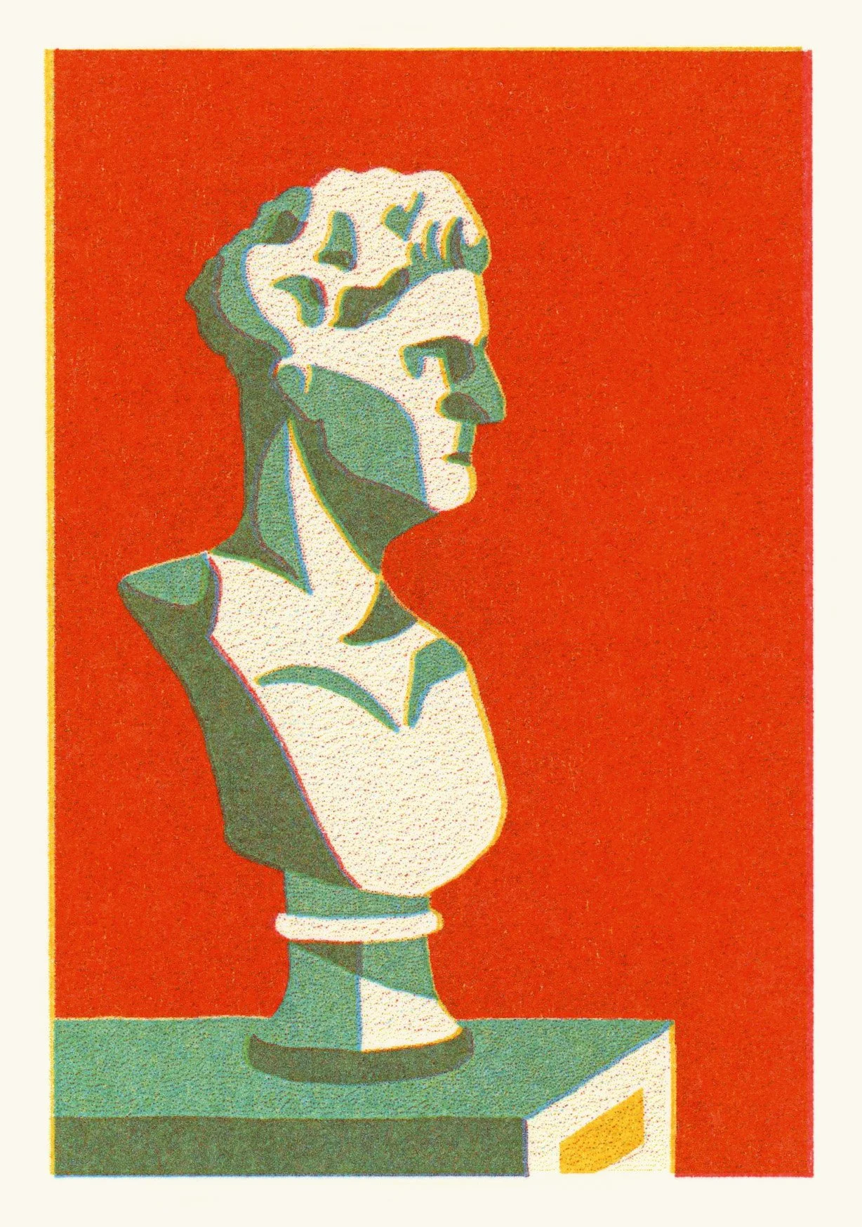 Aqua, red and sunflower risograph