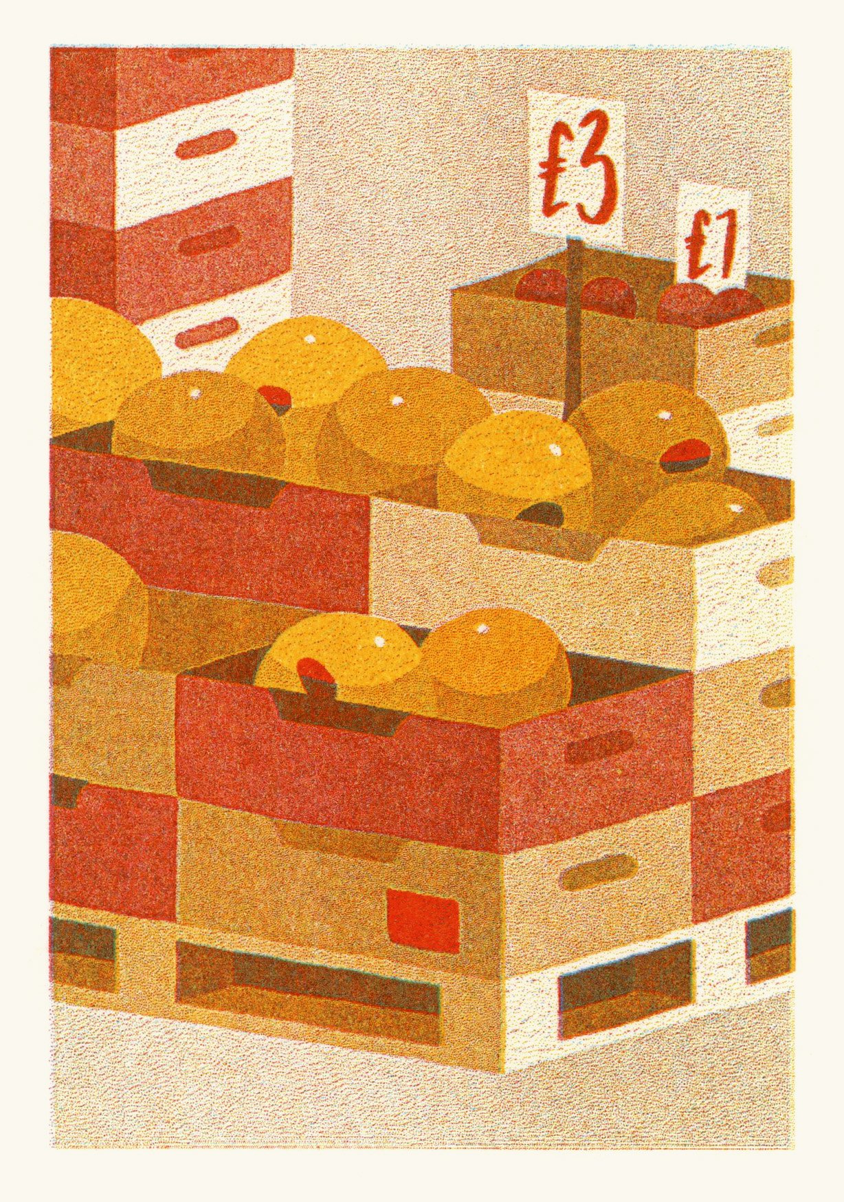 Aqua, red and sunflower risograph